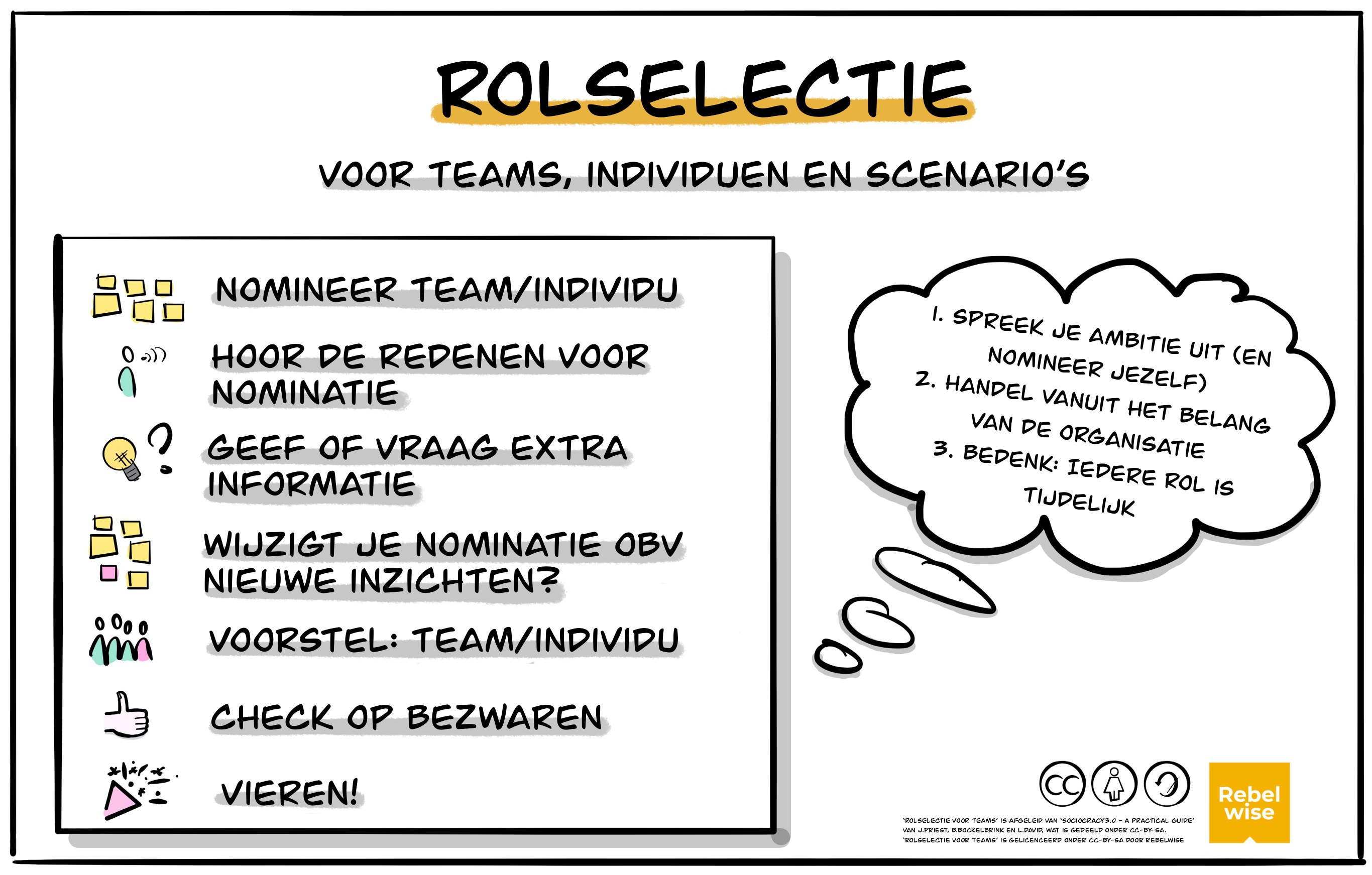 - De verkiezing zelf: Waar wij bij rolselectie uitgaan van het principes van consent, schrijft de wet voor dat er een stemmingsronde plaatsvindt waarin individuele collega’s hun stem op de kandidaten kunnen uitbrengen.